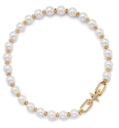18Kゴールドとダイヤモンドを組み合わせたネックレス、ブレスレット、リング、ピアスを展開。パールとスパイクモチーフを交互に配したネックレスやブレスレットは、構築的でありながら有機的な美しさを放つ。細部まで行き届いた仕上げは高品質で優良、見る者に確かな信頼感を与える。