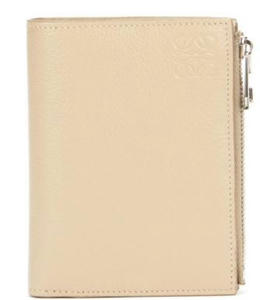 もうひとつのラインとして展開されるのが、アナグラムをさりげなく配したシンプルな二つ折りレザー財布。ソフトグレインカーフを採用し、柔らかなライトベージュカラーでまとめている。装飾を抑えたミニマルな表情は、