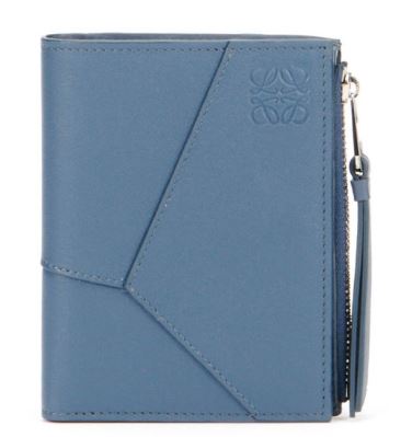 注目のひとつが、ブランドを象徴する「パズルバッグ」から着想を得た二つ折りのレザー財布。幾何学的な切り替えを取り入れたデザインに、新色としてライトベージュ、インディゴ、ブラックが加わった。