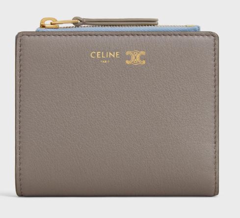 セリーヌは、さらにバイカラーのレザーウォレットも展開しています。内外で配色を切り替えた二つ折り財布やロングカードホルダーは、使うたびに気分が高まるようなデザインです。外側は落ち着いたグレージュやベージュなど、シンプルでエレガントな色合いが使用されており、内側にはライトブルーやイエローなどの明るいカラーが施されています。この配色のコントラストが、デザインに遊び心を加え、洗練された印象を与えます。